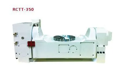 GSA RCTT-350 Trunnion Rotary Table, used condition. Table Dia: 350mm. Center Height: 410mm. Servo motors: MELDAS, FANUC, SIEMENS, HEIDENHAIN. Max RPM: 41.6. Load capacities: Vertical 150kg, Horizontal 300kg. Indexing accuracy: 20".